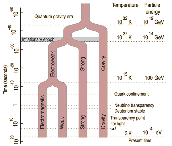 On one hand, there is a quantum theory that studies the behavior of particles and energy at the atomic and sub-atomic level. It considers electromagnetism, strong nuclear force, and weak nuclear force (everything but gravity). On the other hand, there is general relativity that studies the behavior of things on a larger scale with gravity in the mix (gravity alone). Both models/theories of physics act much differently at the two scales. Physics’ biggest issue is trying to reconcile them or at least figuring out why they act differently at the two scales. At one point, all of those forces were united and at some point after the Big Bang, they divided (we humans don’t know exactly when in time or why). If they were united once though, it means they share some common laws of physics that we have not yet figured out.